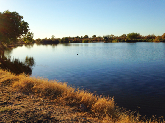 When I'm in the Los Algodones/Yuma area, I prefer to camp at Fortuna Pond. And, since, like I said, it's a little early in the snowbird season, there are only three other rigs here. That left me with many choices of campsites. There was only an hour of sunlight left, and I'd been charging all day (mmmmmmm, sunshine) so I went for one of the spots among the trees. Cozy.